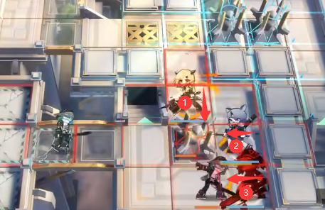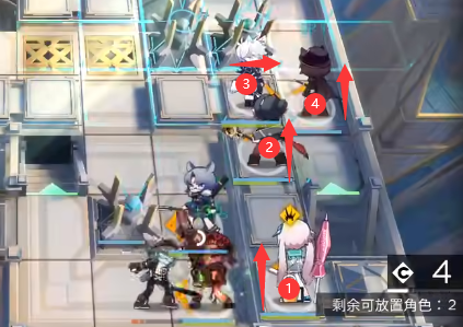 开局如下图所示顺序部署:先锋 → 先锋 → 群攻近卫