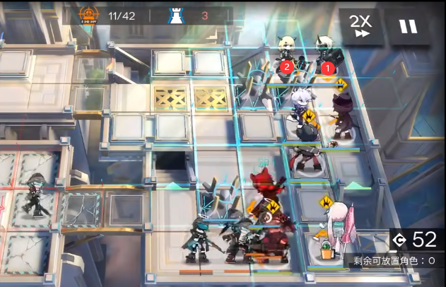 继续部署:单奶 → 单奶 → 单体术师(向右) → 近卫(向上)