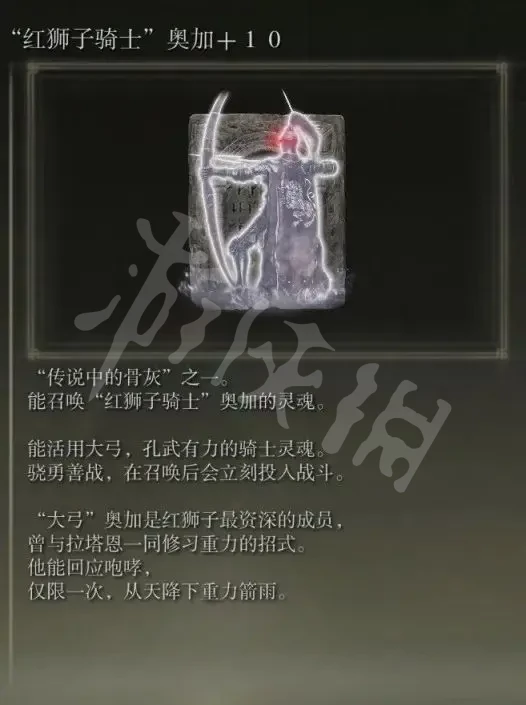 街机cn 来源:厂商 发表于:2022-03-16艾尔登法环红狮子骑士奥加如何获得?红狮子其实奥加是艾尔登法环中的传说骨灰,许多小伙伴不知道如何获得。下面小编就带来艾尔登法环红狮子骑士奥加获取方法分享,一起来看看吧。