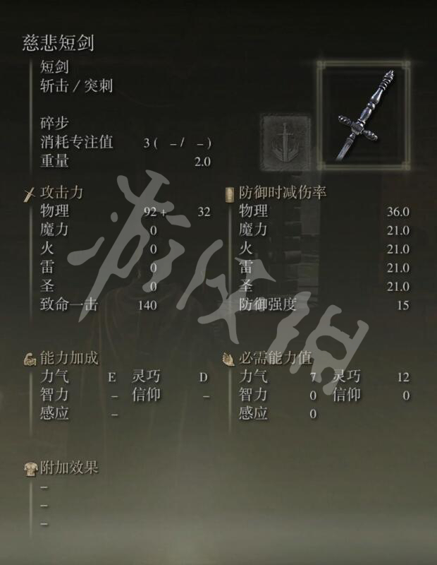 连续两个左转,用石剑钥匙打开雾门后即可获得慈悲短剑。
