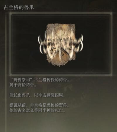 把这个死根交给野兽前辈,获得祷告古兰格的兽爪。
