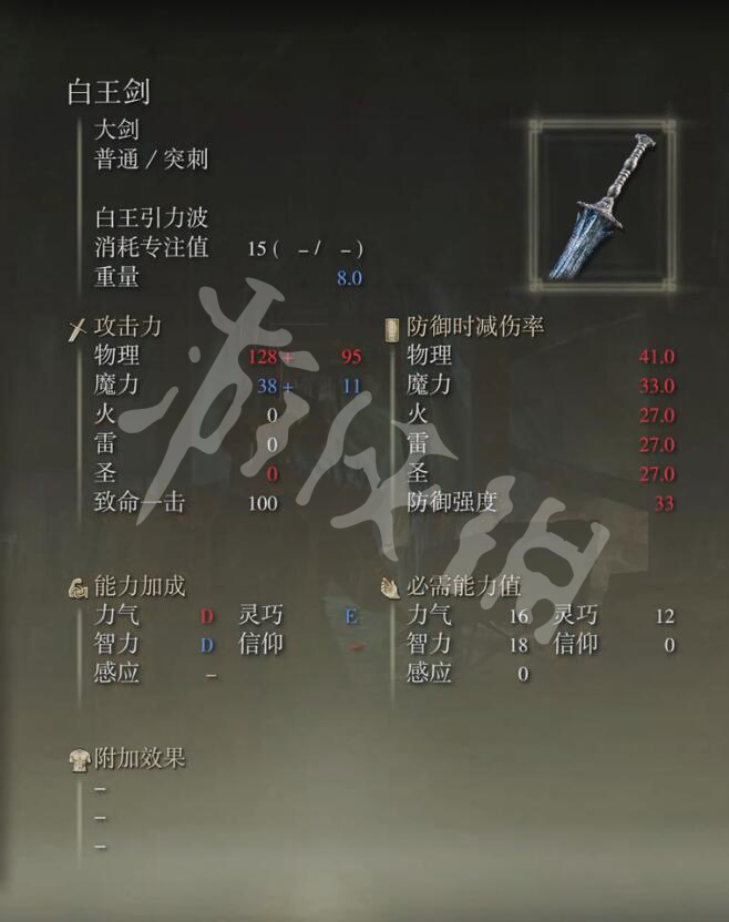 白王剑:以苍白色铁陨石锻成的剑。剑身蕴含重力的力量。