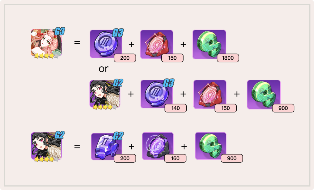 A:那么自然得先肝G3圣痕了,如果已有对应的G2圣痕,通过升变方式是最省时省力的。但如果连对应的G2圣痕都没有,那么通过直接锻造的方式,需要打17次第7层,消耗1700张通行证(不使用燃素购买对应G3材料的情况下)。