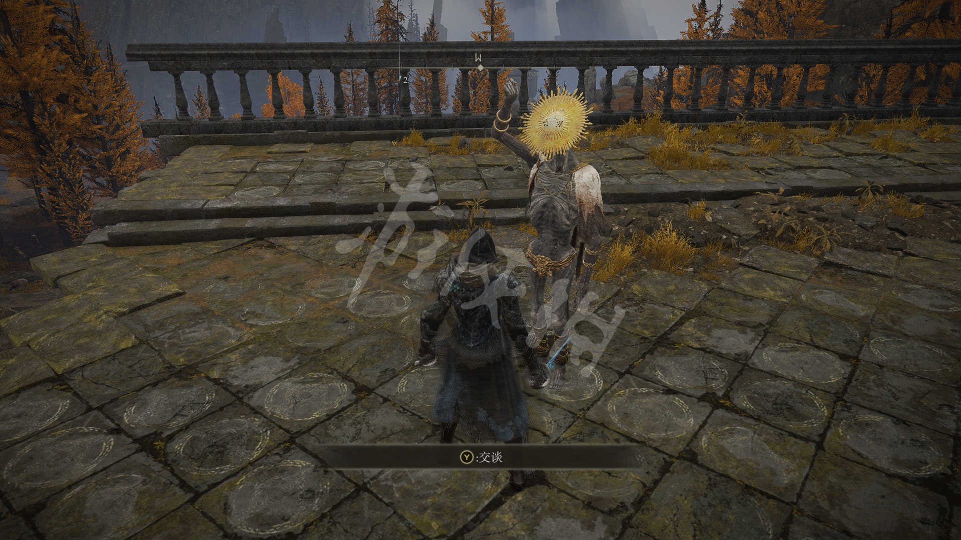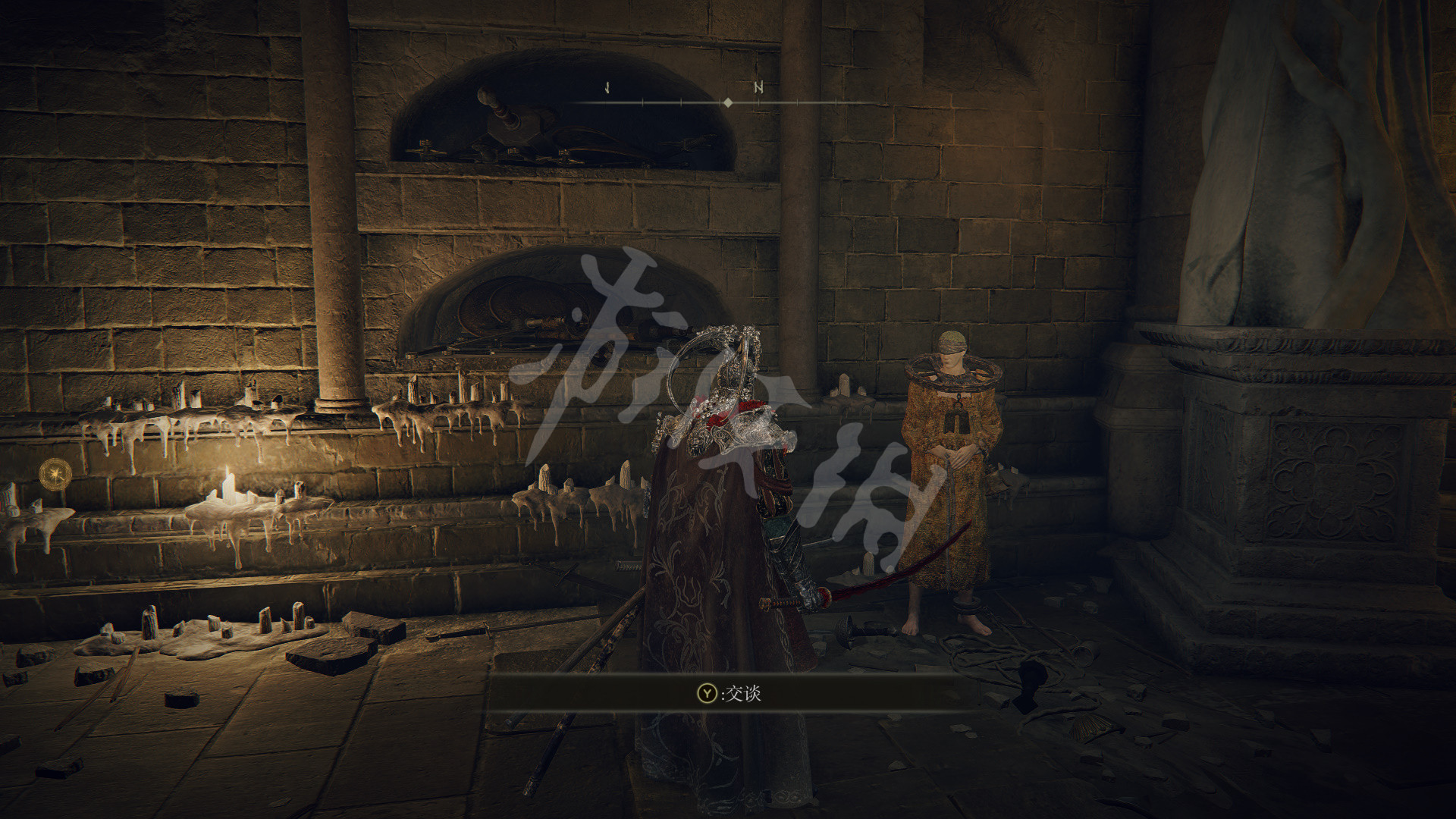 被传送后径直向前走,与金面具交谈。