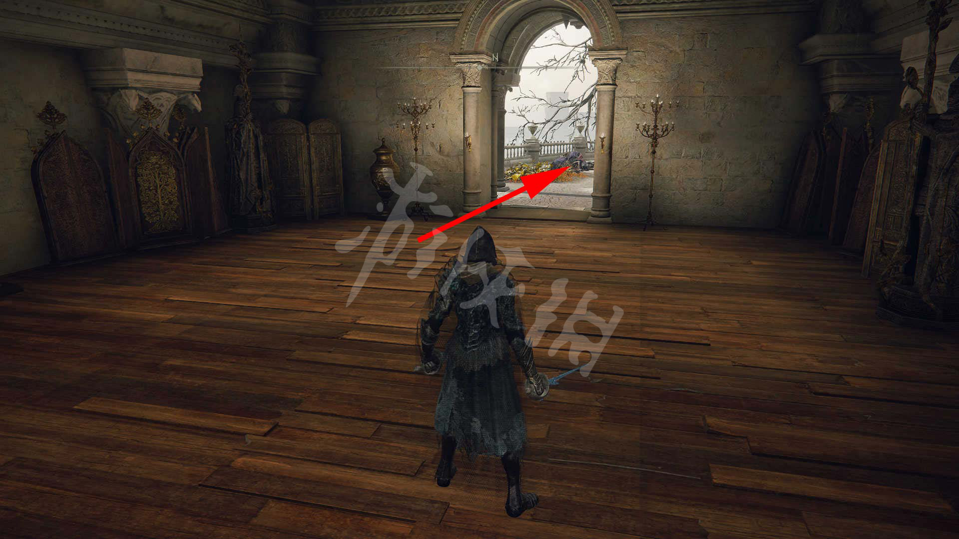 城堡门口处向左走。
