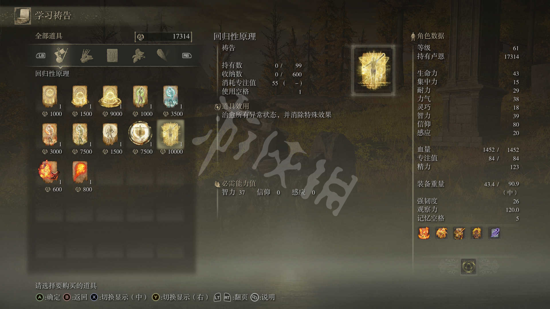 记得在赐福点装备回归性原理。