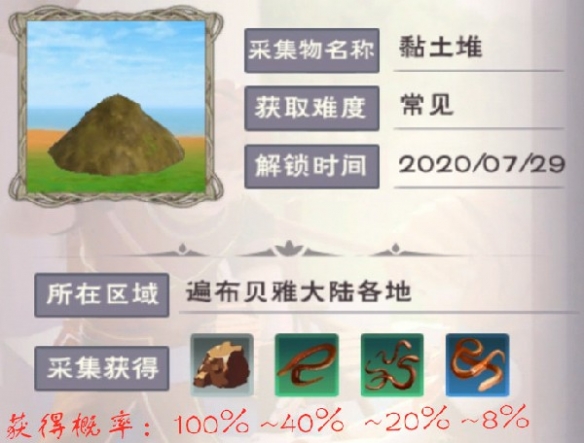 请按图引采集黏土堆获得,推荐金谷草原灯塔附近湖边采集