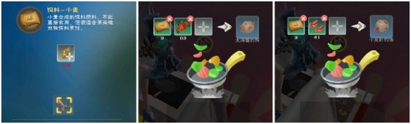 然后按图引通过烹饪锅:饲料小麦+(小龙虾/大闸蟹)=(小龙虾钓饵/大闸蟹钓饵)
