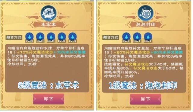 除伤害加成倍率更高外,水牢术与泡泡封印的区别在于取消了符文魔法强度的限制。