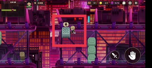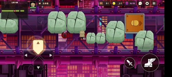拿到磁卡后回到13-1关卡(剧情通关一次后再次进入关卡),来到天桥图示位置,用炸弹将隐藏在石头下面的加速带炸出来