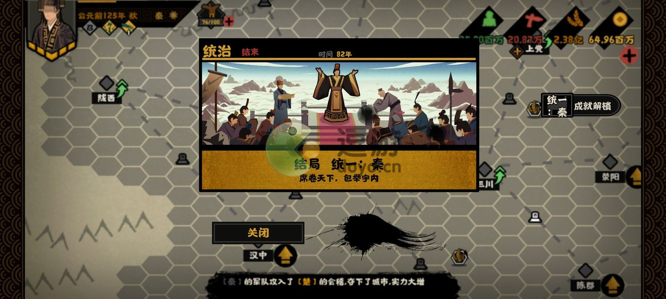 街机cn 来源:厂商 发表于:2022-03-30无悔华夏秦楚汉秦国怎么玩?秦国是秦楚汉中最烧脑的一个国家,他拥有漫长的国境线,甚至在不同地方还有不少的飞地,今天就来给大家详细讲解一下秦国的发展路线。