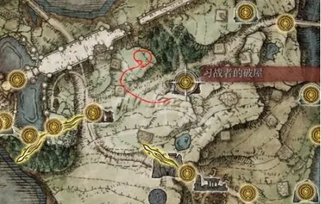 从习战者的破屋出发向上走到图中位置可在一个圆台里捡到。