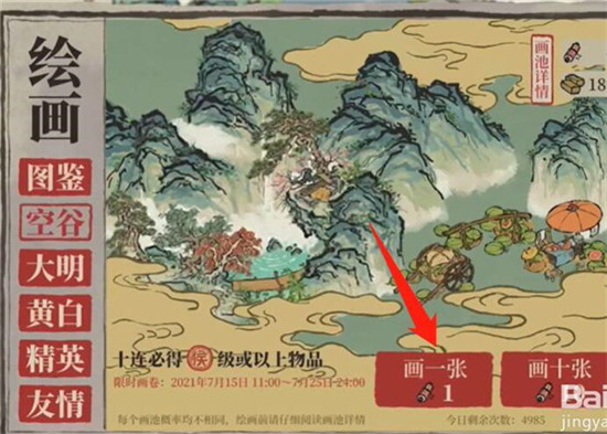 2、随后直接点击空谷建筑卡池,进行绘画即可。