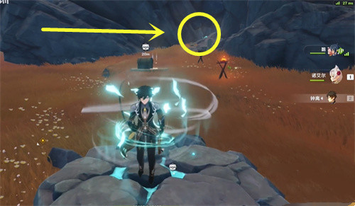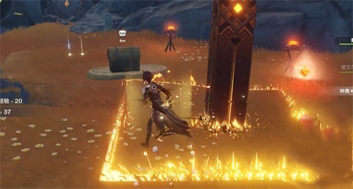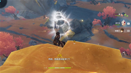 3、然后会出现光圈,我们跟过去来到“发光的石柱”用岩元素攻击