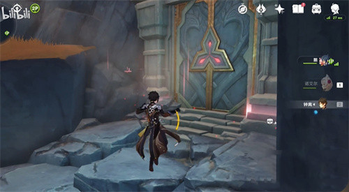 2、在宝箱那个机关上,用岩主放个技能上去(或者钟离的柱子)