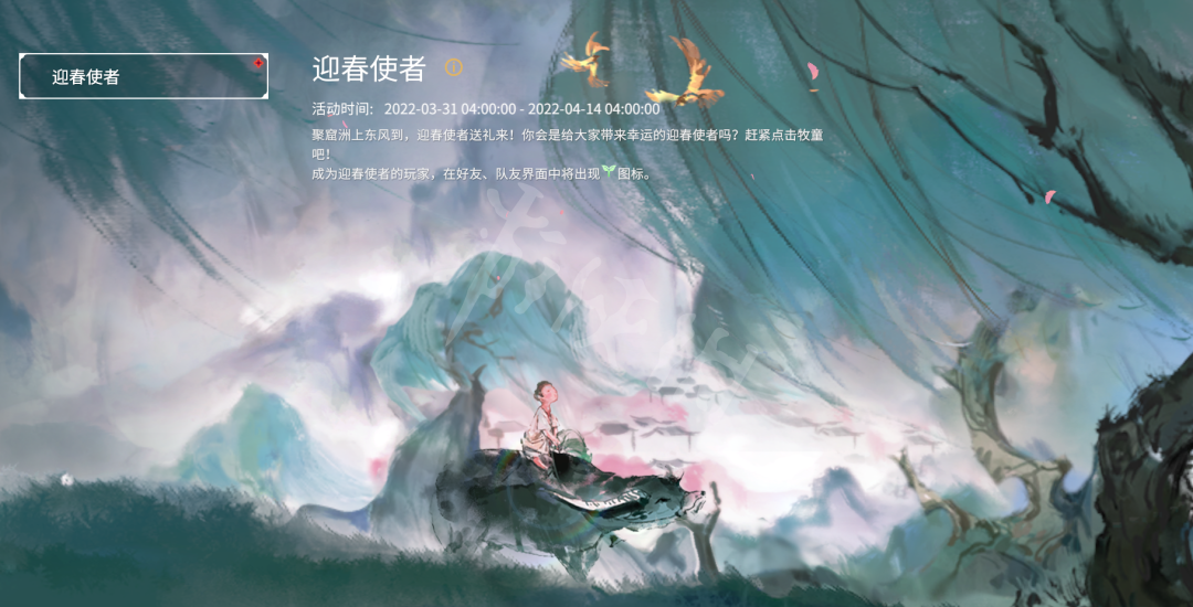 柳碧山青,桃花始盛。迎春使者翩然降临聚窟洲,带来好运与丰厚奖励。