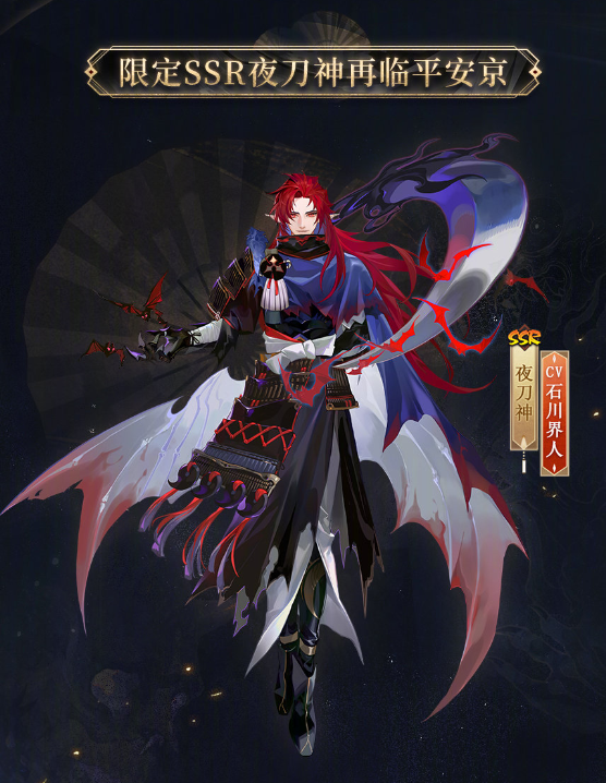 ※诡神再临,游戏人间,限定SSR阶式神夜刀神(CV:石川界人),携新皮肤再临;