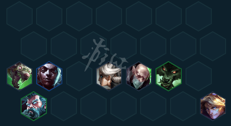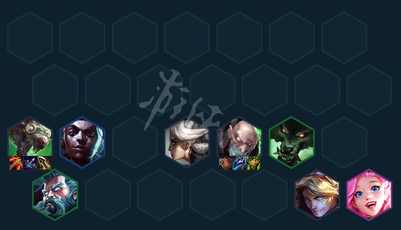 阵容组成(从左到右,从上到下):图奇(1)、艾克(3)、卡密尔(1)、辛吉德(1)沃里克(2)、基兰(2)、伊泽瑞尔(1)、萨勒芬妮(4)