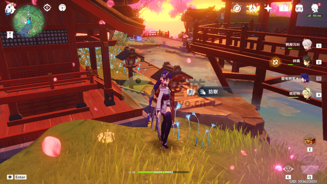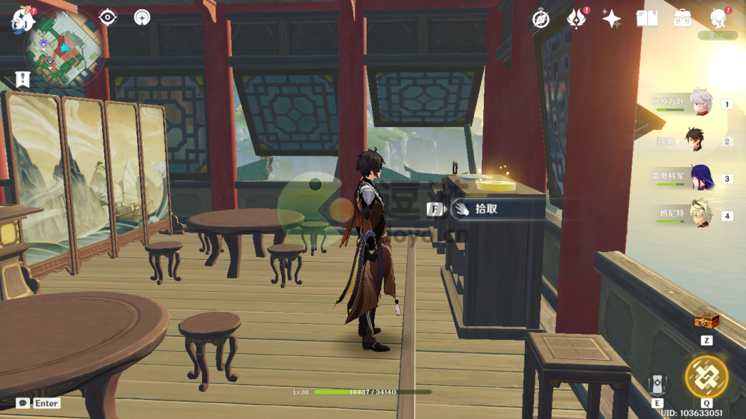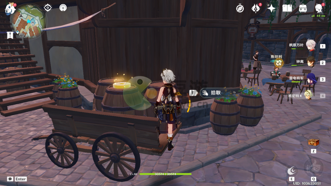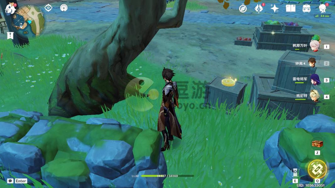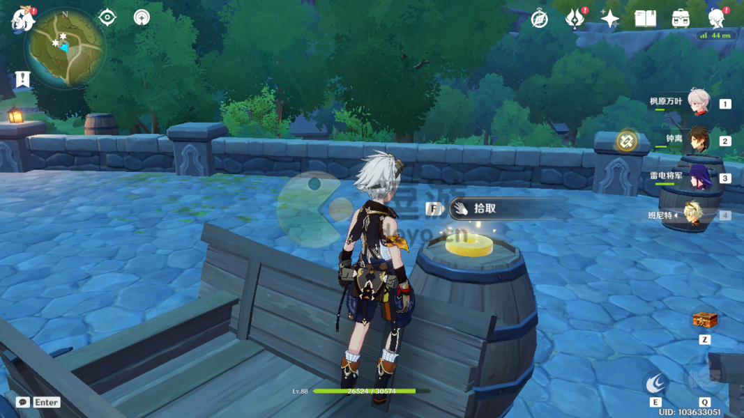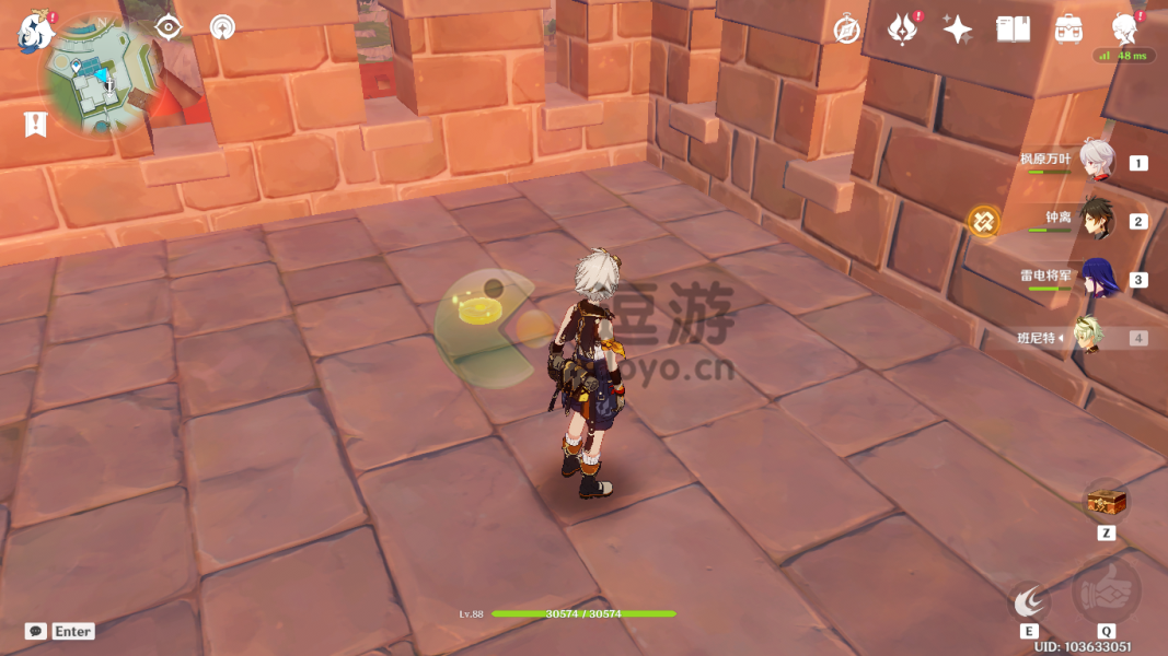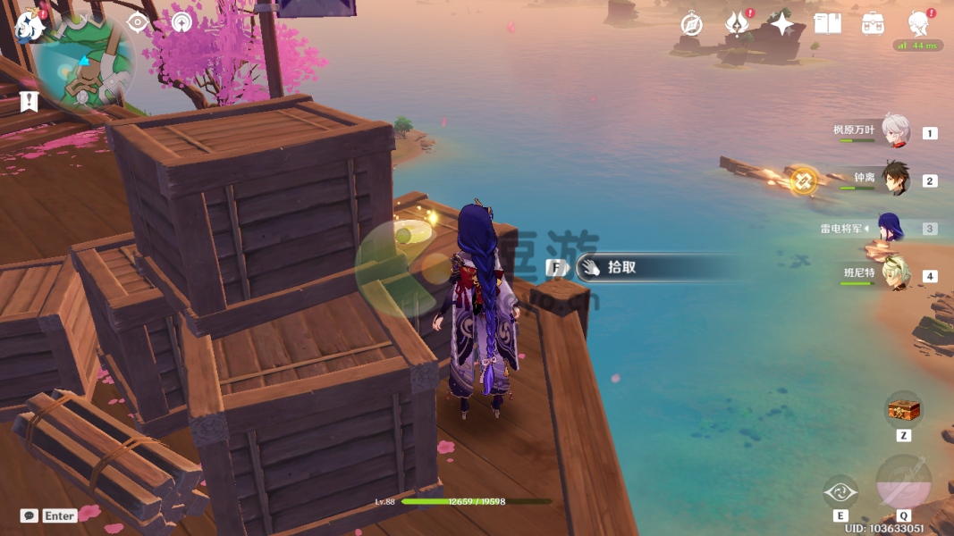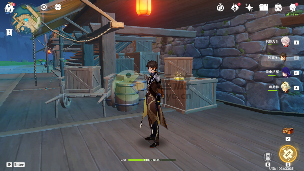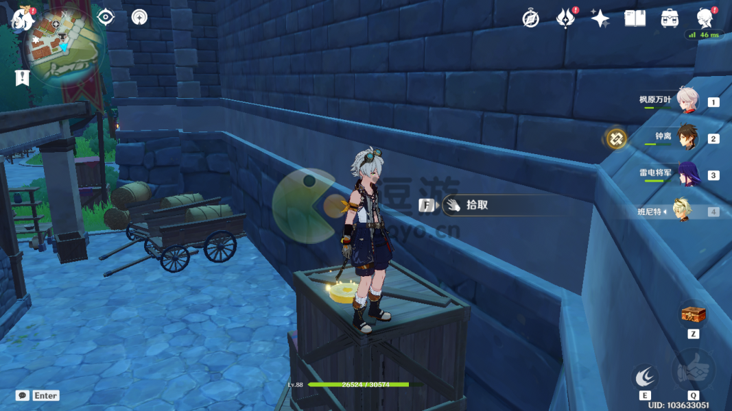 ②稻妻城上方的传送锚点向左下方走,也有一堆堆起来的箱子,玉帛正在最顶上。