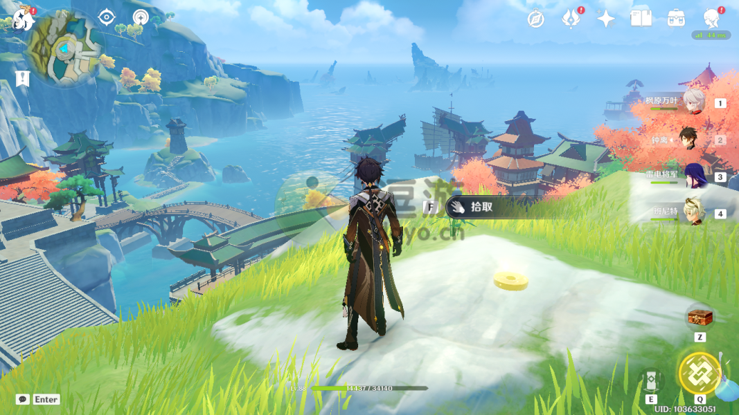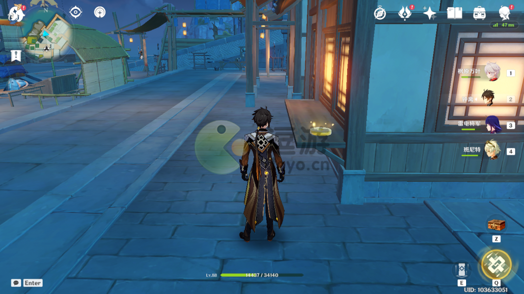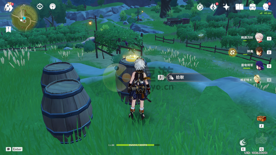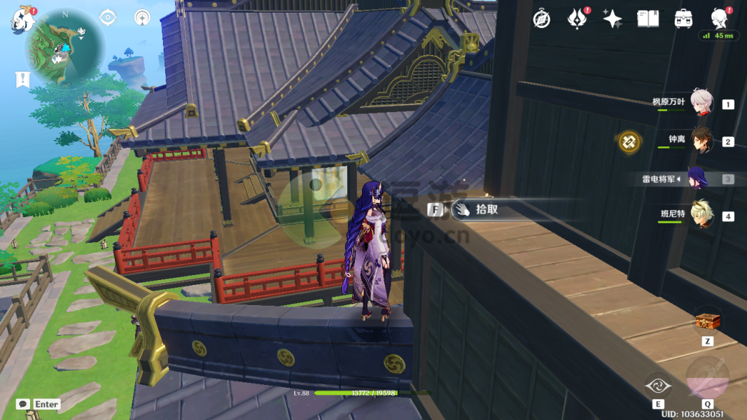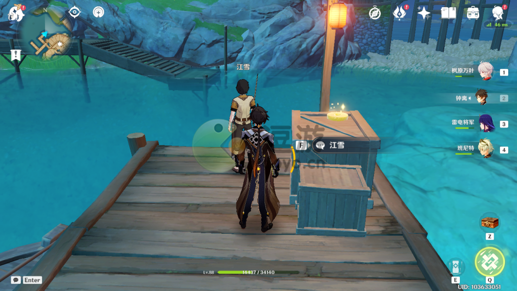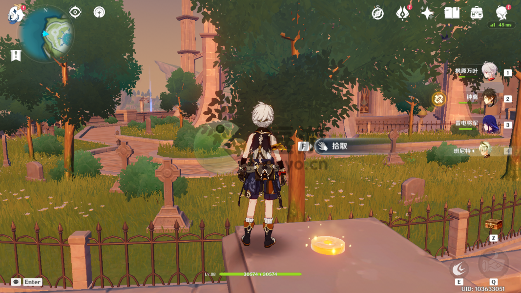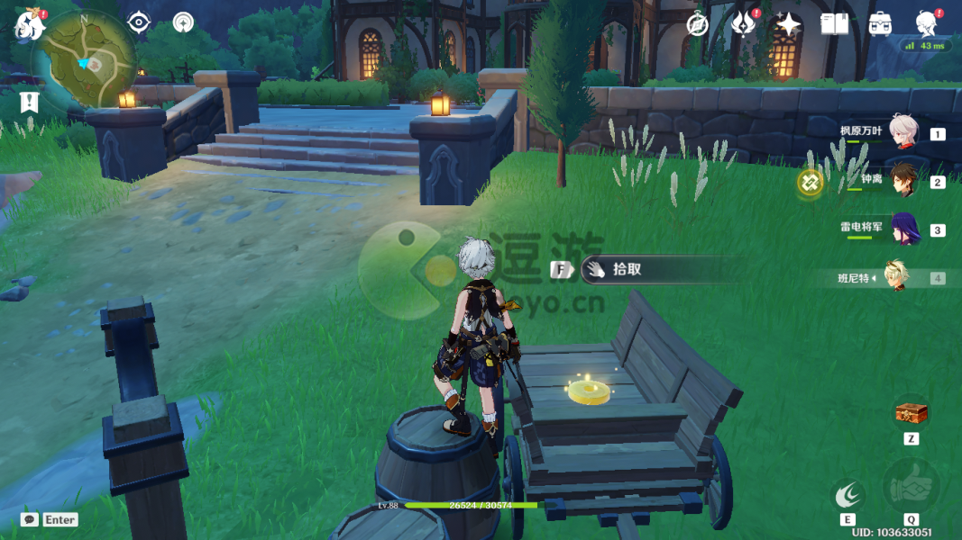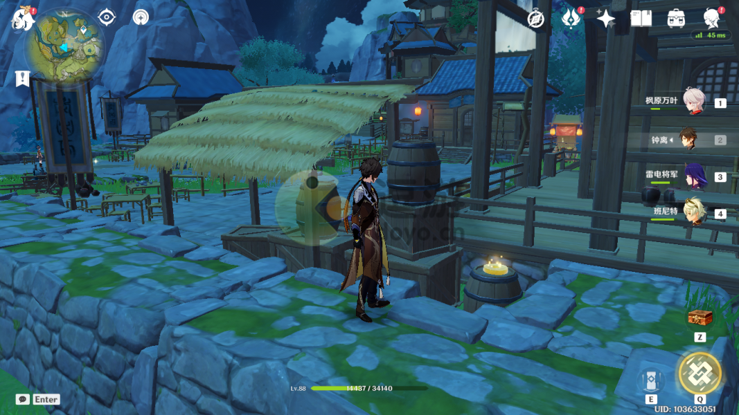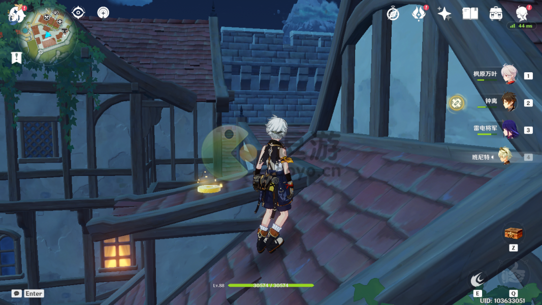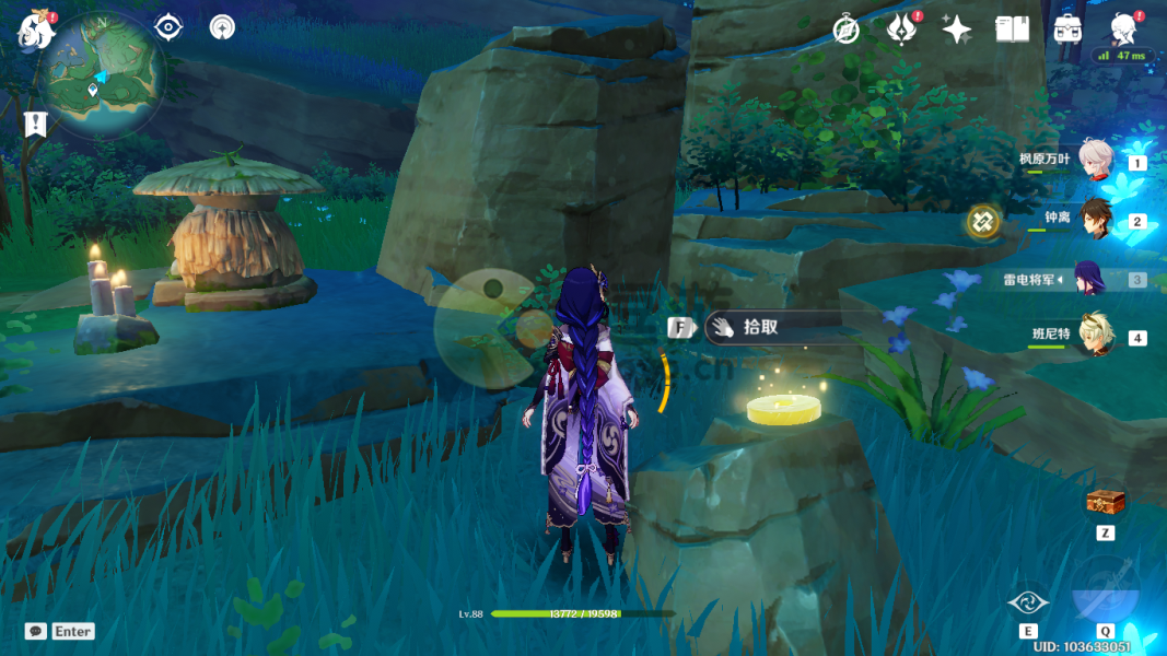 ②稻妻城上方的传送锚点向左下方走,也有一堆堆起来的箱子,玉帛正在最顶上。