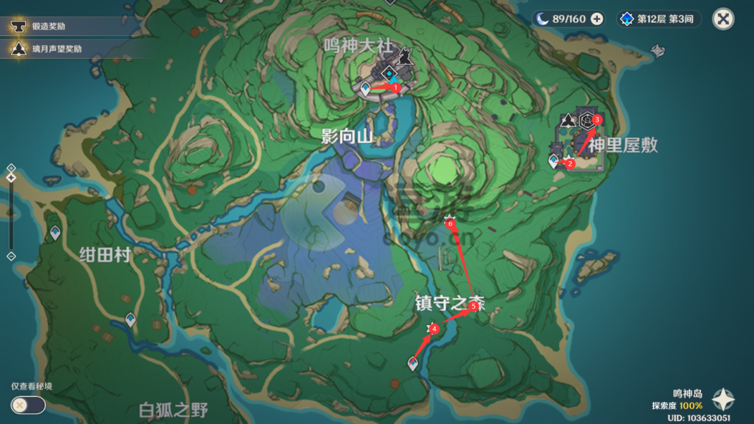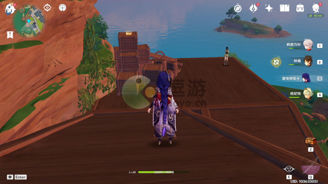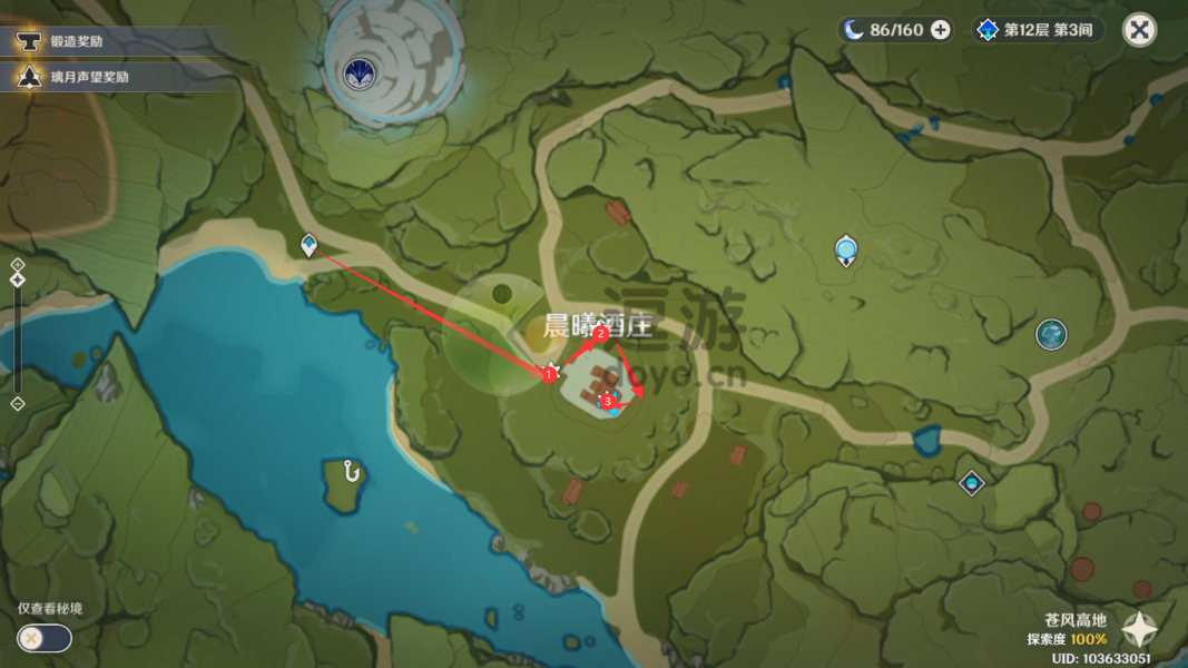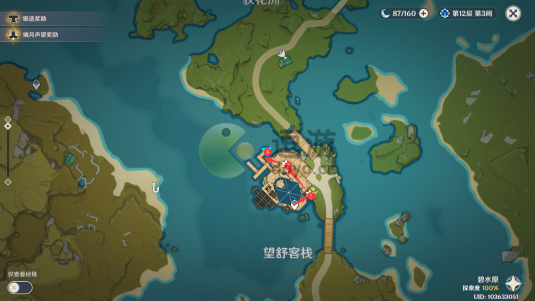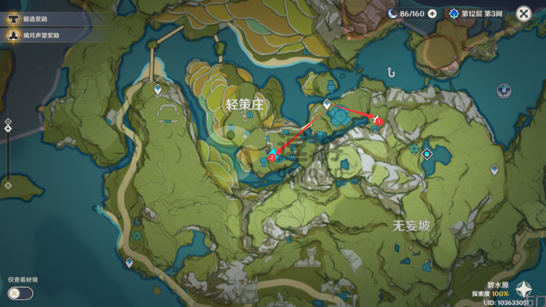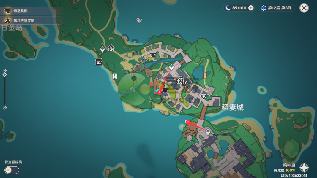 ①稻妻城下方的传送锚点向左方向飞,在堆起来的箱子上面