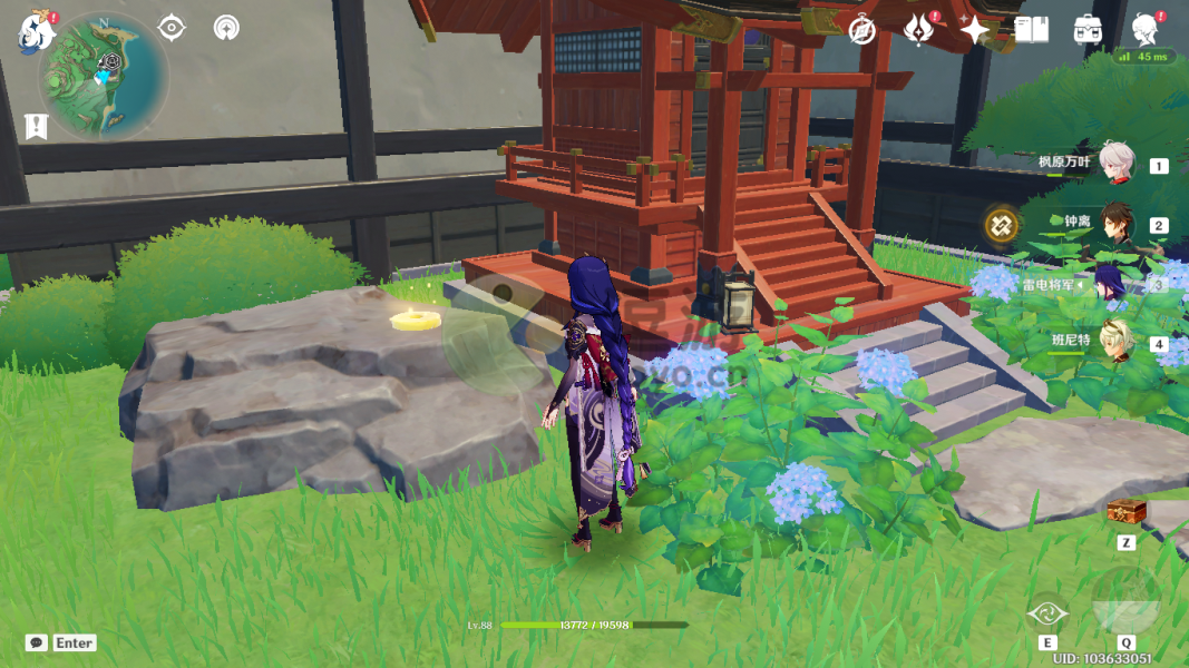 ①在神龛旁边。鸣神大社传送点直接向右方跑就看到了