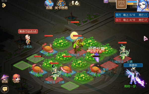 4、除此之外,我们也可以利用大海龟前20回合拥有10000额外气血的特性,让大海龟在前期频繁靠近非律法单位,利用超级反震达成多次击杀,进而保证我方胜利时拥有更多的棋子。
