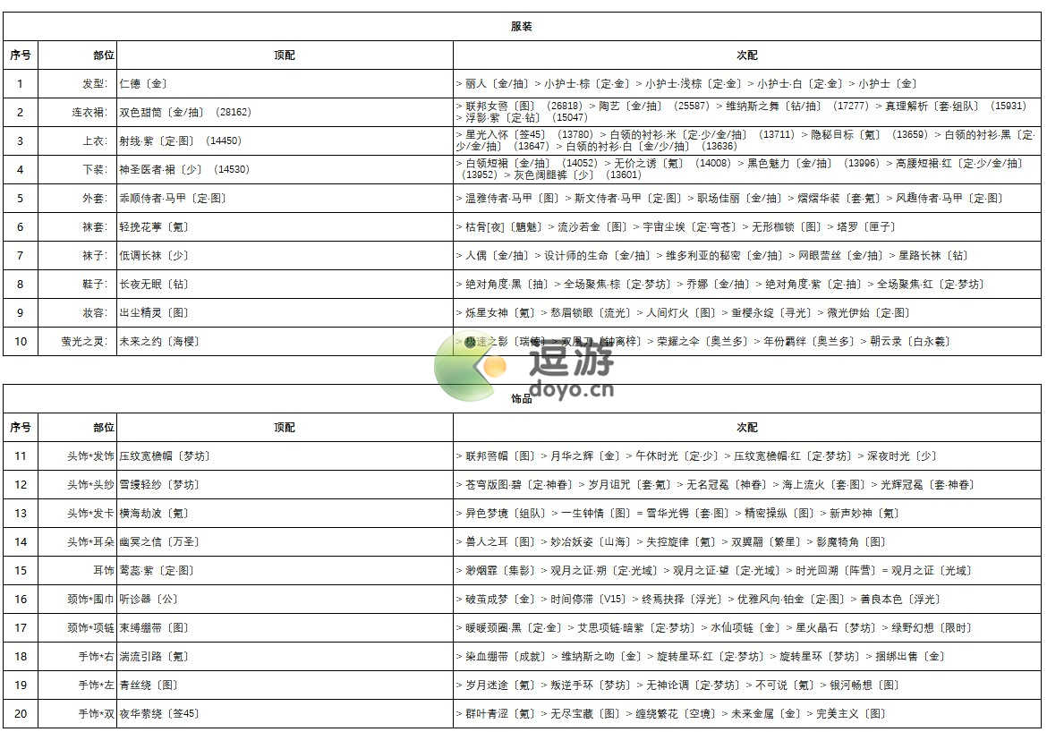 1.图中就是小编为玩家们分享的破晓之战白领套装高分搭配了,玩家们按照这个服装的图鉴顺序来搭配就好了,最前面的就是分数最高的。