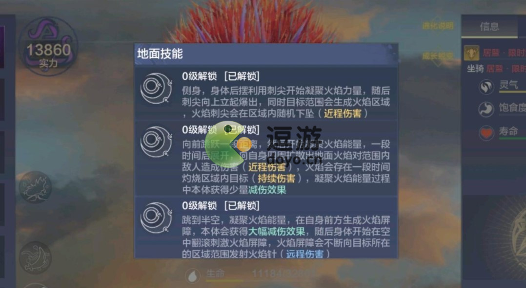 1.居暨是双人坐骑,虽然能飞,但是不能够下水,悬停,飞起来挺有意思的,暴击天赋是加固定暴击,还是百分比,这个就非常厉害了,群攻技能比较的多,是陆地图腾专属进化宠物。