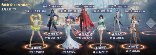 4、多次试验后只能达到488分,距离510分的满分还有一些差距,这里只上了7个人保证轮转,7人的总战力是1187万,其中唐晨的战力大概380万左右,暗三为300万左右,希望这个水平能给大家一些小小的参考。