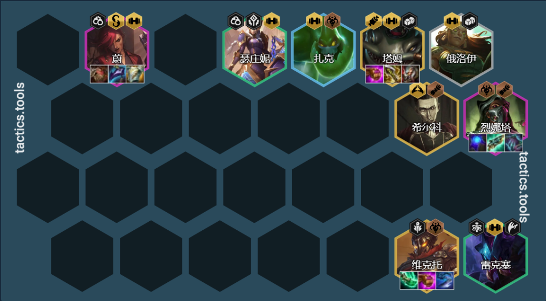 阵容组成:俄洛伊、挖掘机、猪妹、扎克、蔚、烈娜塔、希尔科、塔姆、维克托