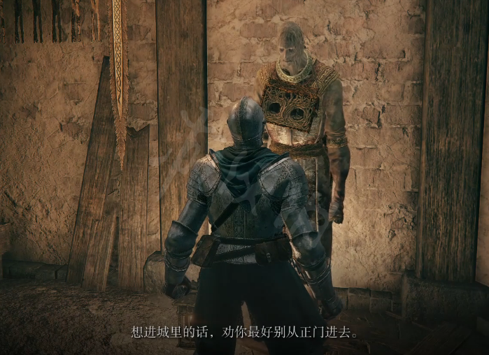 他会建议玩家从屋中左侧的小路进入史东薇尔城,不过如果玩家想从正门进入城中,他也会为玩家打开大门。这里建议大家听他的建议从小路入城,因为正门内不远处的高台上有三门弩炮,如果玩家直冲大门的话很可能会被射爆。