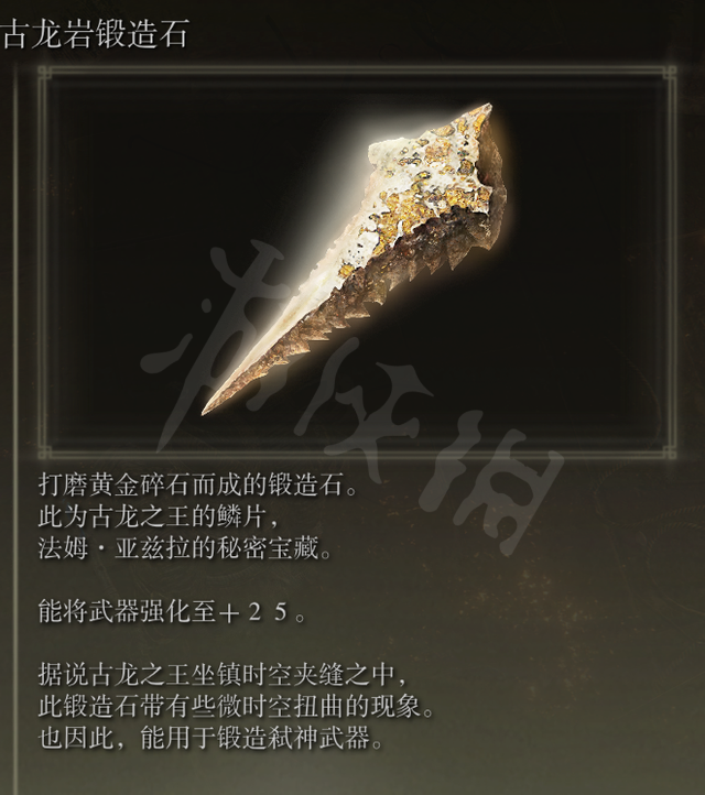 与葛托克对话,他会继续开始出售物品,并且商品中会新增一颗售价40000卢恩的古龙锻造石,可以用来将普通装备强化到最高的+25等级。与涅婓丽对话也可以直接获得一颗古龙锻造石,葛托克的支线到此全部结束。