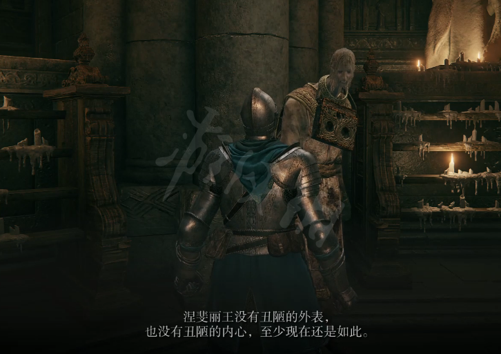 4、当玩家分别完成战士涅婓丽(将风暴鹰古王的骨灰交给涅婓丽)和城主肯尼斯(替肯尼斯夺回海德要塞)的支线,并击败“恶兆王”蒙葛特后,再次传送到“接肢”葛瑞克的赐福处,向前来到后面的房间内,会发现涅婓丽、肯尼斯和葛托克都在此处。