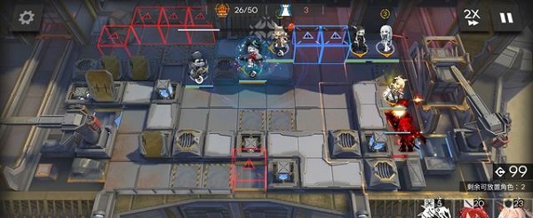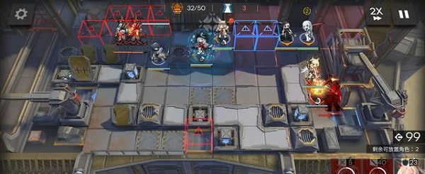 2、开局先部署羽毛笔,这个基本上很难找到替代的,然后就是红蒂部署好,右侧部署好耀光冲下攻击,耀光携带一技能暖机技能,冲下攻击。