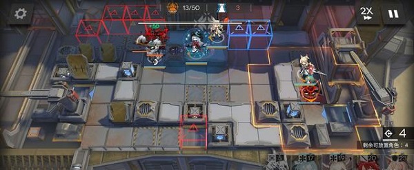 2、开局先部署羽毛笔,这个基本上很难找到替代的,然后就是红蒂部署好,右侧部署好耀光冲下攻击,耀光携带一技能暖机技能,冲下攻击。