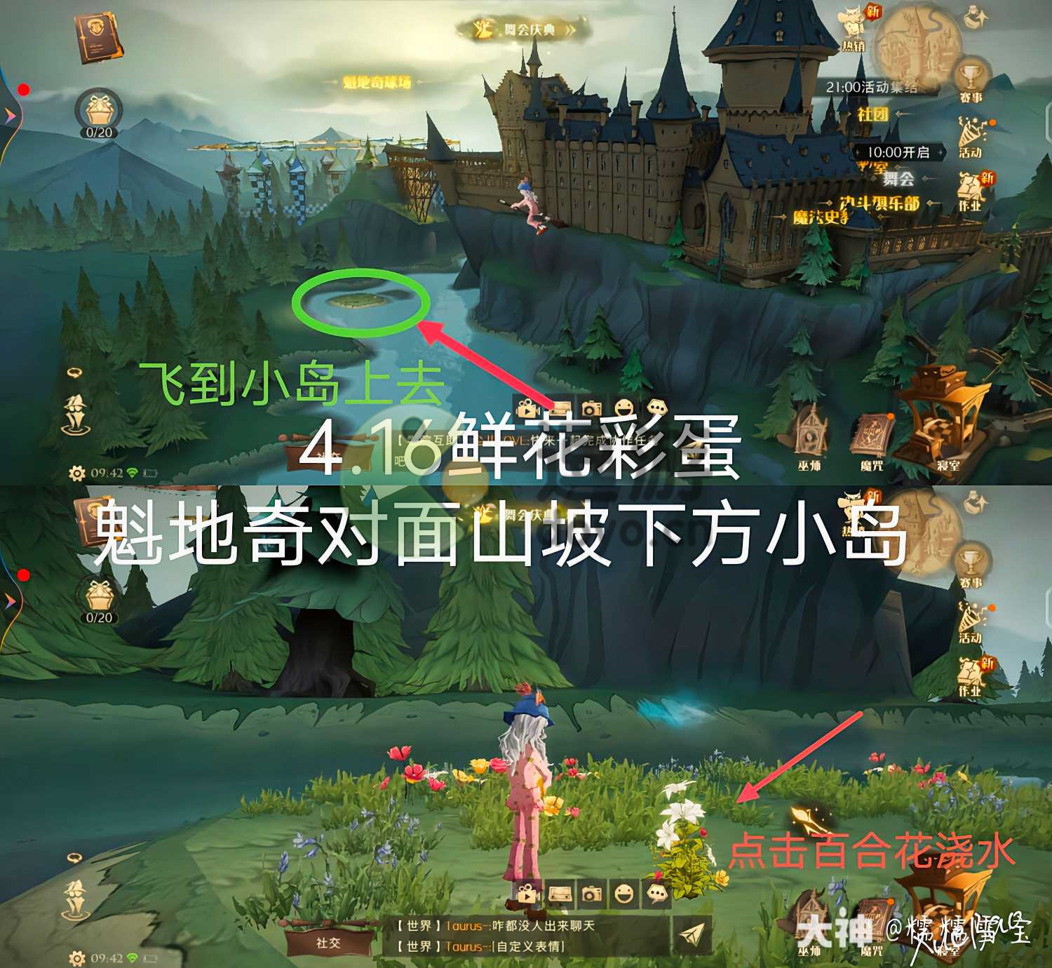 2.哈利波特魔法觉醒4月16日鲜花彩蛋:我们需要飞到魁地奇对面的山坡下方的小岛上,然后找到百合花,点击浇水即可获得50枚奶油雏菊。