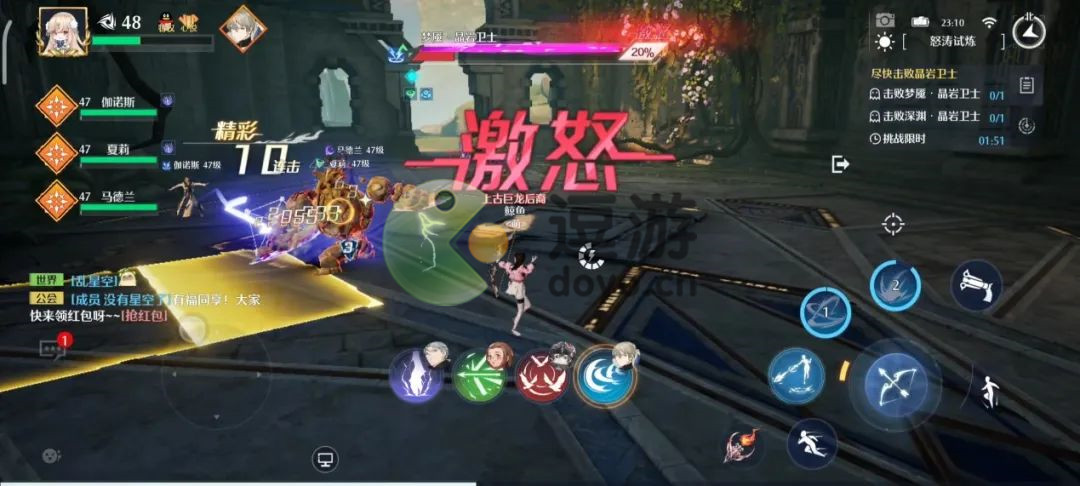 3.敌人愤怒后立即使用4个幻灵的觉醒技能,同时使用炎火?融毁,配合此阵容的幻灵来达成极致增伤,快速削弱敌人的血线。