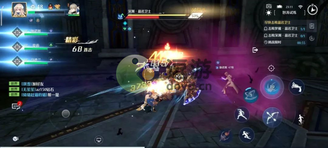 2.单个幻灵的觉醒技能充能完毕后不要立即使用,应等待全部幻灵的觉醒技能充能完毕后来达成4连携,并且在晶岩卫士进入愤怒状态后再使用(怪物进入愤怒状态后立即使用觉醒技能,可使怪物立即破防)。