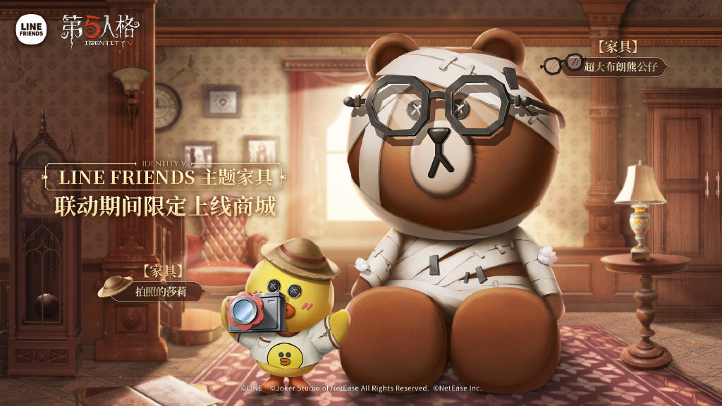 还有求生者【随身物品】LINE FRIENDS联动布偶及【家具】拍照的莎莉、超大布朗熊公仔等待各位侦探解锁。