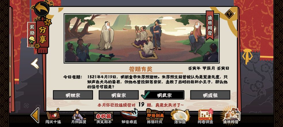 无悔华夏渔樵问答4月19日答案