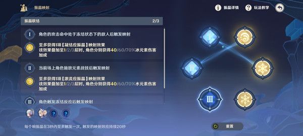今日增益:①水元素伤害加成、②冰元素伤害加成、③冻结时造成伤害提升