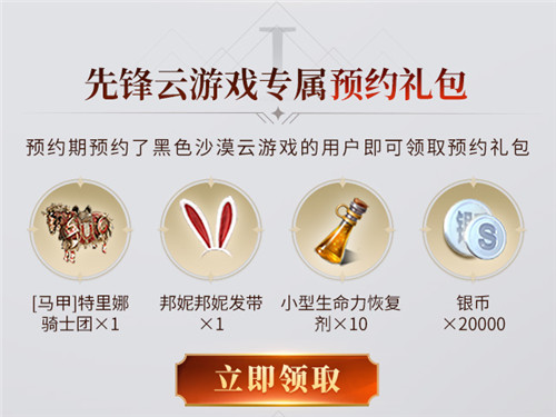 通过腾讯先锋云游戏预约《黑色沙漠》云游戏的用户,可以领取腾讯先锋云游戏的专属预约礼包。