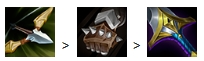 轻语是烬必备的核心装备,也是希维尔的最佳输出装,破甲效果配合上烬技能的高额物理加成可以打出非常恐怖的爆发伤害,水银则给烬提供免控容错。后续的装备选择给金克丝或是泽丽都可以。