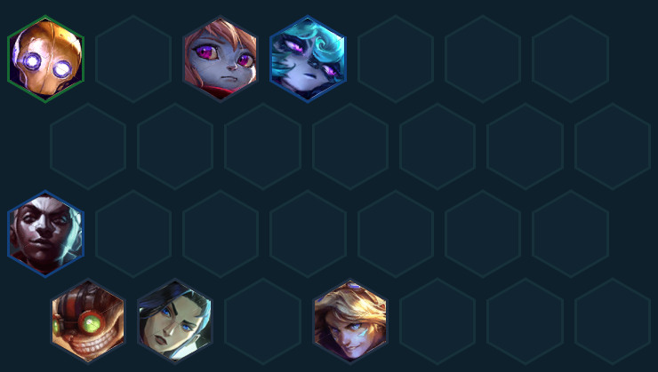 中期运营3-5/4-1直接拉七,这个阶段可以以4极客2保镖为基础阵容白嫖任何质量卡过渡,有希维尔和烬都可以直接拿,一般在选秀后两回合就可以考虑上八启动,根据来牌可以灵活组建阵容。