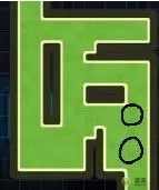 (注释:黑色圆圈是炎爆怪/激光怪;红色三角是攻击减免塔;蓝色三角是防御减免塔;橙色三角是激光塔;白色圆圈是重伤塔)