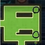 (注释:黑色圆圈是炎爆怪/激光怪;红色三角是攻击减免塔;蓝色三角是防御减免塔;橙色三角是激光塔;白色圆圈是重伤塔)