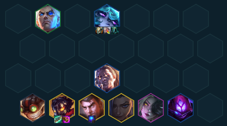 这套阵容的策略是运营速八找金克丝和维克托,2-1直接拉四,开3约德尔2极客等前期强力羁绊打前期连胜,2-5升五人口压制,上机器人开2保镖或是根据羁绊去找其他质量卡打工保证连胜状态后期才有容错找五费C位。选秀优先保证蓝buff再考虑其他装备。