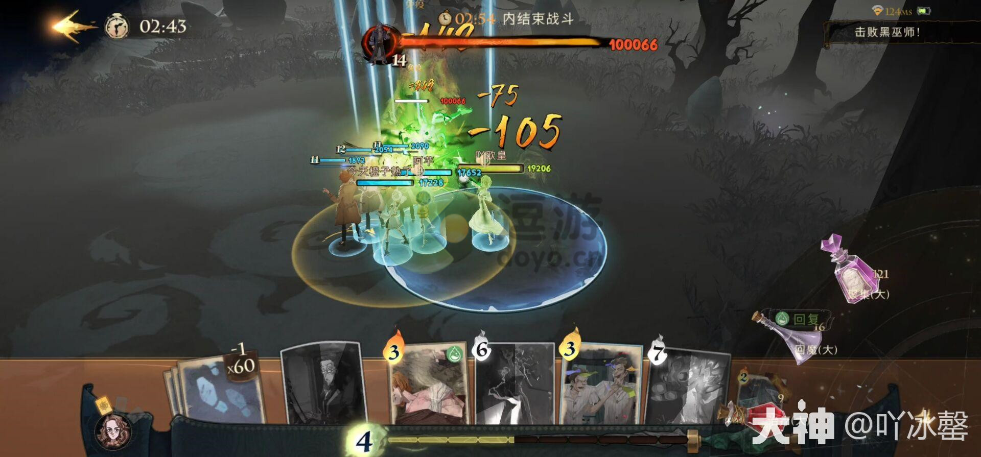 打法介绍:开局确保手中有钻心剜骨和闪回咒,然后三人站在一起,释放赫敏后释放钻心剜骨,轮流甩才华药剂(加速魔力恢复)。接着就是不停放钻心剜骨和闪回咒直到红袍黑巫师死亡。