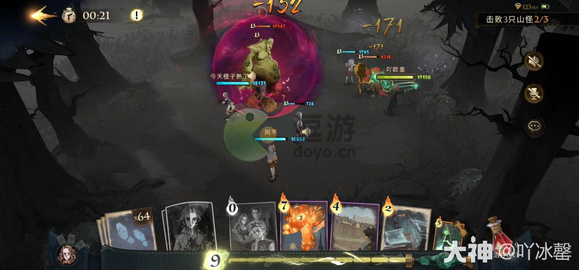 打法介绍:使用伙伴卡-艾薇,用消失咒让巨怪消失。